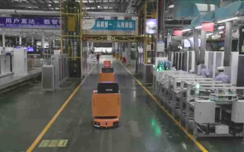为车载冰箱物流配送打造的智能解决方案,,,,包含产中物流通过潜伏举升AMR搬运至线边,,产后成品物流智能仓储,,,,流程包含产中物流智能齐套入库,,,,线边安灯叫料AMR智能配送至线边,,,,成品入库、、出库,,,,通过无人堆高车机器人,,,智能仓储管理替代人工作业管理,,,实现更高存储、、、、更高效率、、更具柔性化的解决方案。。。